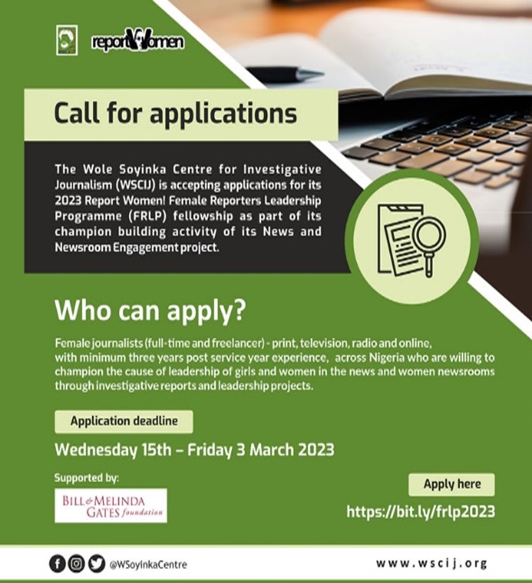 (FRLP) fellowship champion building edition. It was courtesy of a collaboration between the centre and the Bill & Melinda Gates Foundation. The Report Women! Programme designed to increase the quantity and quality of news reports about access and abuse affecting girls and women in Nigeria started in 2014. Before the 2023 edition, the programme had produced 74 fellows.