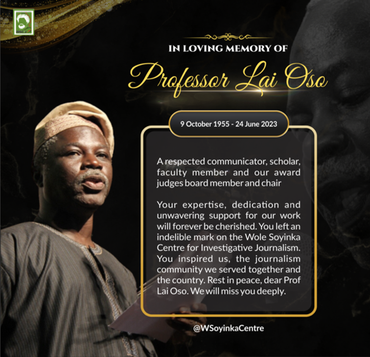 The 18th Wole Soyinka Award for Investigative Reporting honoured ten journalists as late Mass Communication professor, Lai Oso posthumously received the Human Rights Defender Award and Lifetime Award for Journalistic Excellence for his contribution to human rights and journalism.