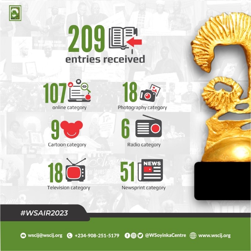 Next was the call for entries submissions for the 18th Wole Soyinka Award for Investigative Reporting. Submissions commenced on Wednesday, October 4 for investigative stories produced between October 4, 2022, and October 3, 2023.