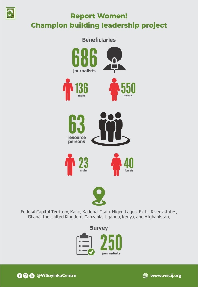 We also embarked on the Champion building component of the Report Women! News and Newsroom Engagement designed for the Female Reporters Leadership Programme Fellows to improve parity between men and women in news and newsroom leadership with the support of the Bill and Melinda Gates Foundation. 12 pitches were received, 11 entries were selected while 10 Fellows completed their proj