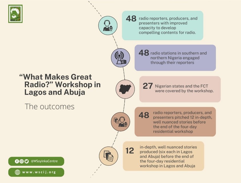 With the United States Mission in Nigeria’s support, WSCIJ hosted ‘What Makes Great Radio?’ in Abuja and Lagos, to enhance the reporting skills of radio professionals.