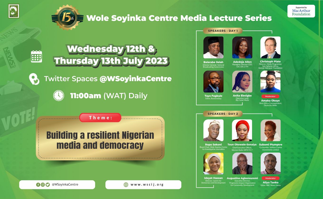 The 15th edition of the Wole Soyinka Centre Media Lecture Series titled ‘Building a resilient Nigerian media and democracy’ focused on robust framework and sustainable income generation for media viability.