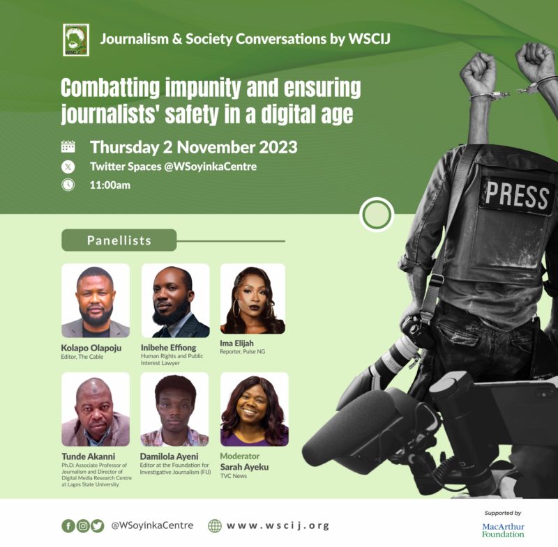 Speakers at the November edition of the WSCIJ Journalism & Society Conversations urged media organisations and journalists to embrace digital tools, ethical reporting and take advantage of support groups to stay safe in the line of duty. The monthly conversation with 964 listeners celebrated the ‘2023 International Day to End Impunity for Crimes against Journalists’ as panelists emphasised journalists’ protection in the digital age.