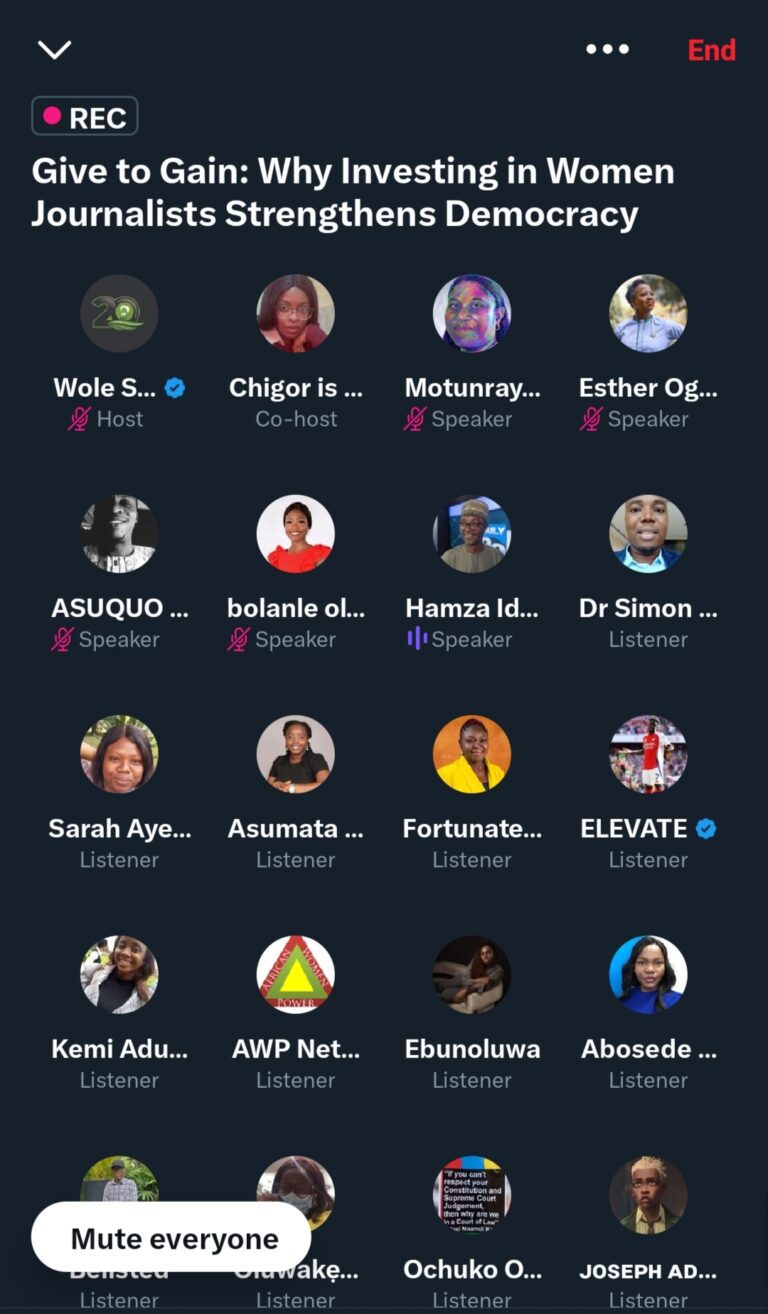 Newsrooms remain critical sites for shaping democratic accountability, yet women continue to face structural barriers to leadership and influence within the media ecosystem. According to the Who Leads the Newsroom and News? report, published by the Wole Soyinka Centre for Investigative Journalism as part of the Report Women! Newsroom and News Engagement programme, women occupy only about 25–26 per cent of newsroom leadership positions in Nigeria. Against this backdrop, the Centre convened its March edition of the Journalism & Society Conversations on Tuesday, 10 March 2026, on X Spaces, to interrogate a central question: what must be given to women journalists for them to fully contribute to strengthening democracy? The discussion aligns with the United Nations’ International Women’s Day theme, ‘Rights. Justice. Action. for All Women and Girls,’ while engaging with the campaign framing of ‘Give to Gain,’ which emphasises investment in women as a pathway to institutional and societal progress.