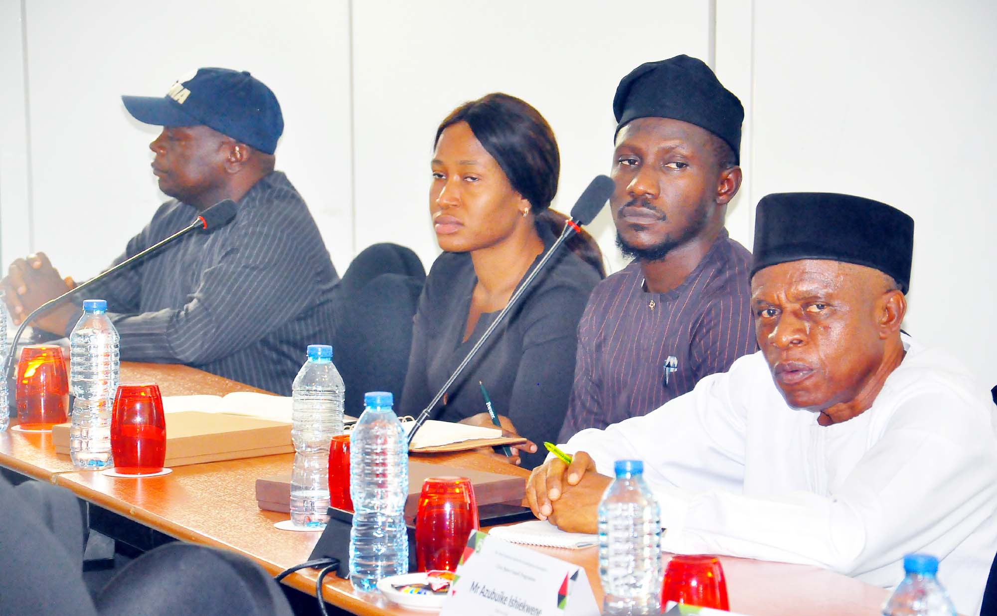 L-R: Representative of the Corps Marshal FRSC, Honey Ogundayo, Deputy President Guild of Corporate Online Publishers M r Danlami Nmodu, Deputy President Nigerian Guild of Editors Ms Hussein Akila Bangshika, MNI. during the Wole Soyinka Centre for Investitive Journalism, Civic Space Guard Project, High-Level Stakeholders Meeting on Safety of Journalists and Robust Civic Space, held in Abuja