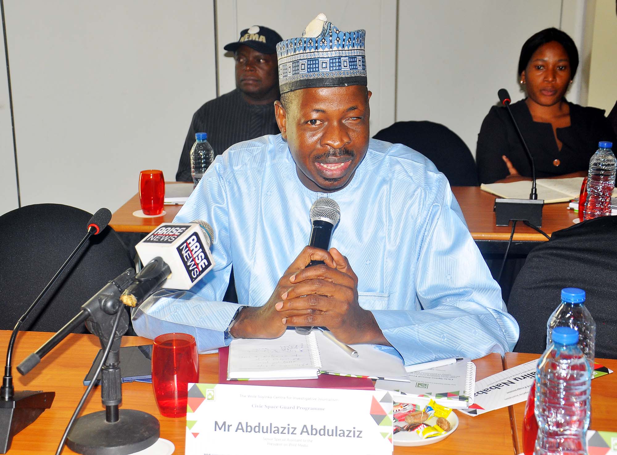 SSA Print Media, to the President, Abdulaziz Abdulaziz, during the Wole Soyinka Centre for Investitive Journalism, Civic Space Guard Project, High-Level Stakeholders Meeting on Safety of Journalists and Robust Civic Space, held in Abuja
