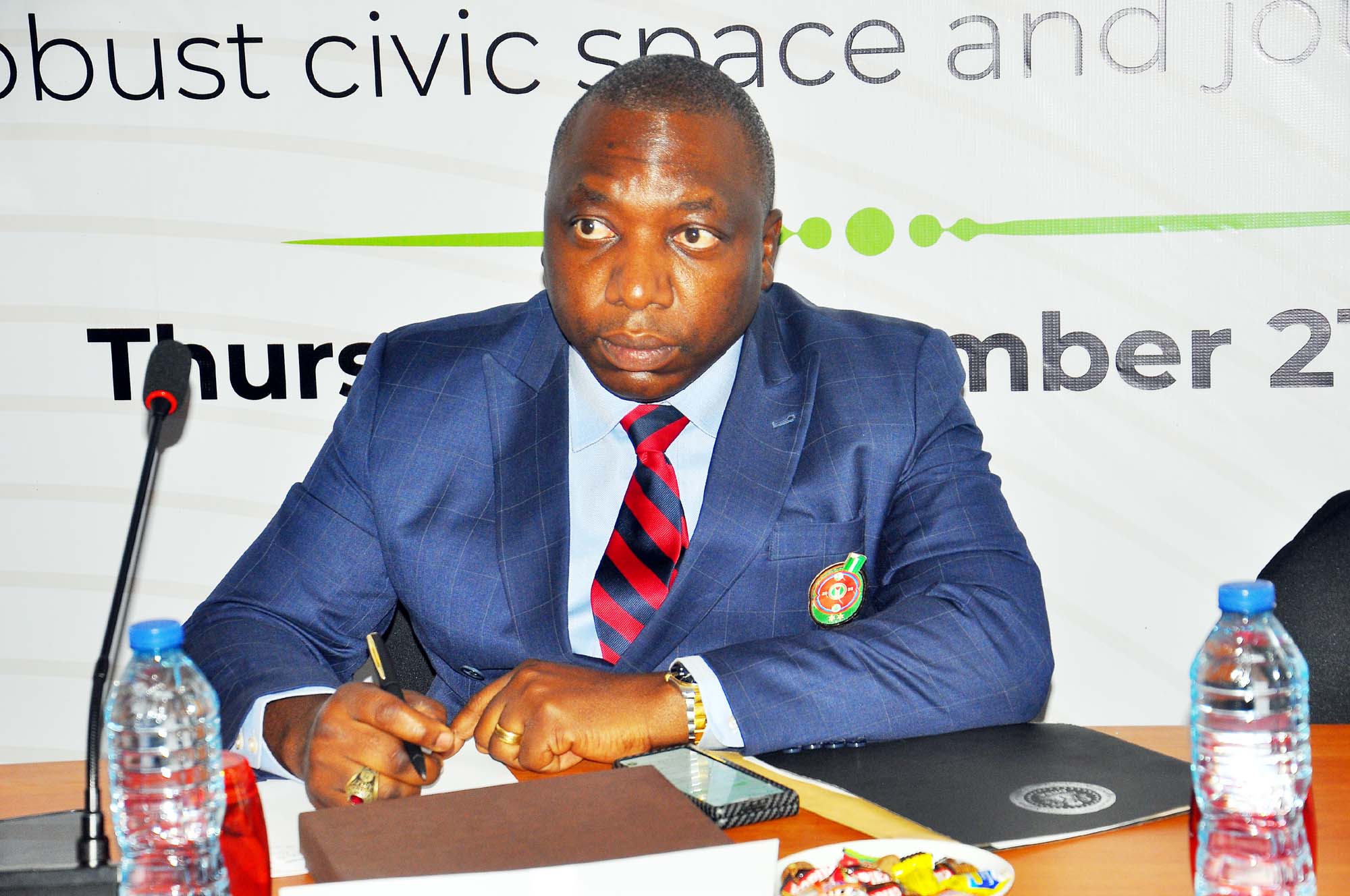 Executive Director Centre for Free Speech, Mr Richard Akinola, during the Wole Soyinka Centre for Investitive Journalism, Civic Space Guard Project, High-Level Stakeholders Meeting on Safety of Journalists and Robust Civic Space, held in Abuja