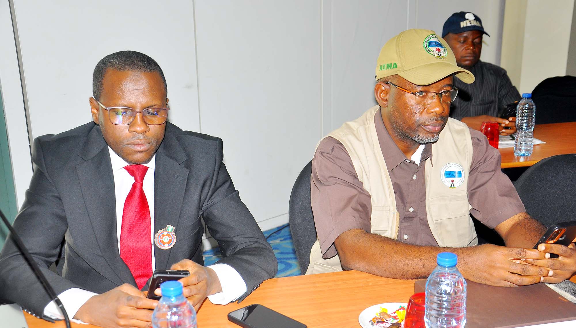 L-R: Chairman of Independent Corrupt Practices and Other Related Offences Commission (ICPC), Dr Musa Aliyu, with the Deputy Director Planning National Emergency Management Agency (NEMA), Mr. Manfred Anusim, during the Wole Soyinka Centre for Investitive Journalism, Civic Space Guard Project, High-Level Stakeholders Meeting on Safety of Journalists and Robust Civic Space, held in Abuja