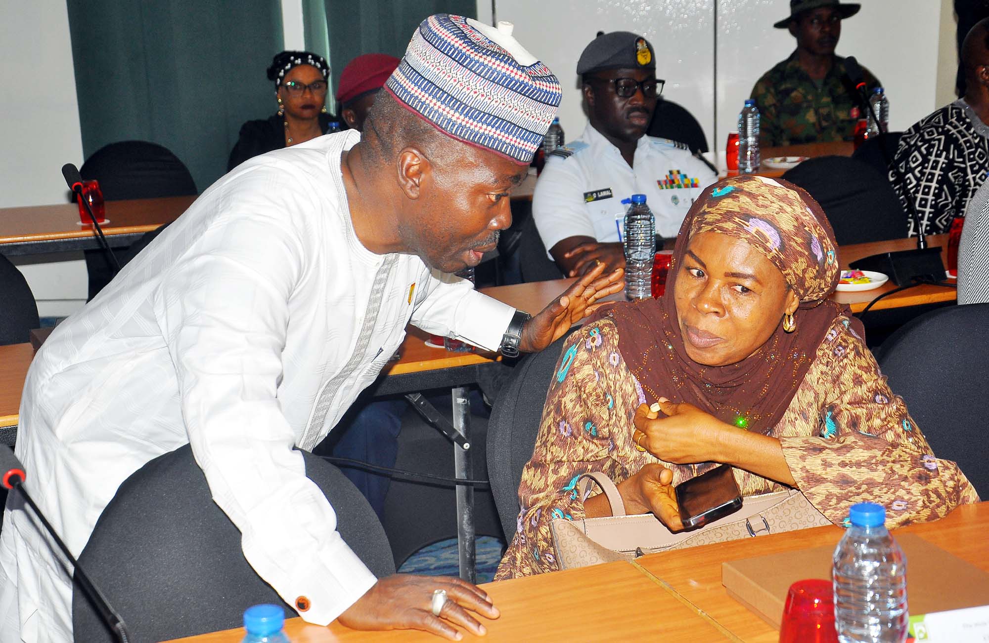 L-R: Representative of the National Security Adviser (NSA), Director of Communications office of NSA, Major General Samad Akesode with Executive Director/CEO, Wole Soyinka Centre for Investitive Journalism (WSCIJ), Motunrayo Alaka, during the Wole Soyinka Centre for Investitive Journalism, Civic Space Guard Project, High-Level Stakeholders Meeting on Safety of Journalists and Robust Civic Space, held in Abuja