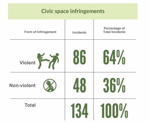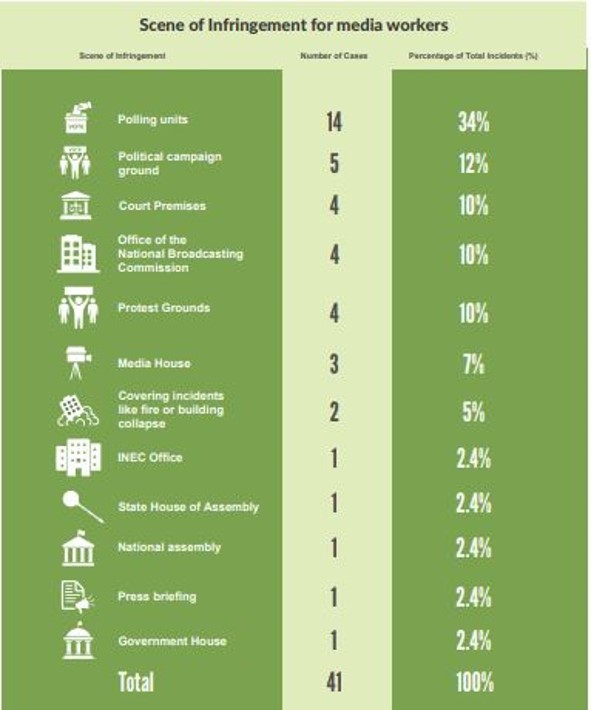 She revealed that 64% of reported cases (86 incidents) were violent infringements, including assaults and fatalities, while 36% (48 cases) were non-violent, involving access denial and regulatory sanctions. She explained that the trend showed systematic suppression through access denial and regulatory sanctions. Further findings revealed that journalists faced 44 attacks, with 41 occurring while on duty, underscoring the risks they endure. Alaka revealed that polling units emerged as the most dangerous locations, accounting for 34% (14 cases) of civic space infringements against media workers.