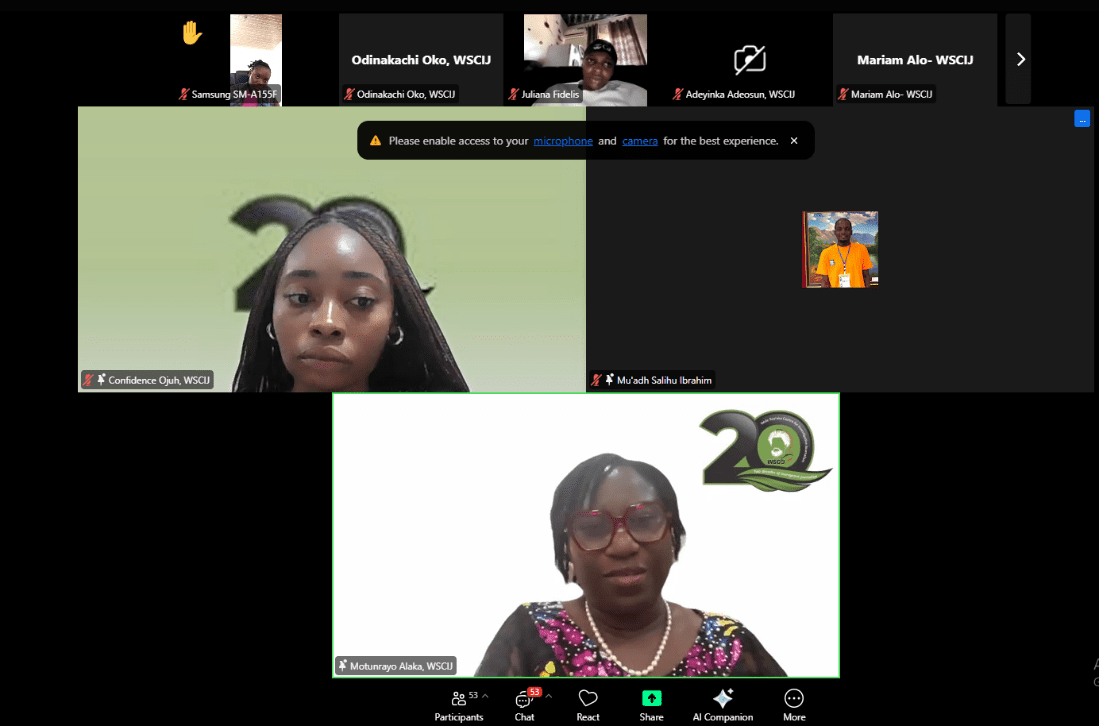 Across both days, moderated by Mariam Alo, Programme Officer, and Confidence Ojuh, Communications Officer at WSCIJ, participants were guided to sharpen how they identify stories, structure narratives, and apply ethical judgement in reporting. The sessions reinforced the importance of specificity, human-centred storytelling, and editorial discipline. Participants were better equipped with technical skills, as well as critical thinking, confidence, and a stronger sense of responsibility in their journalism practice.