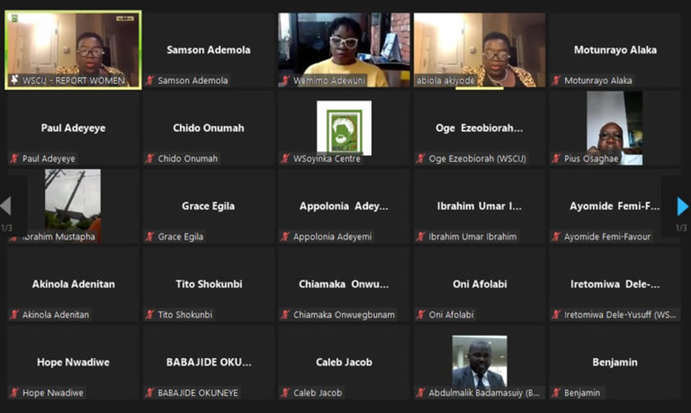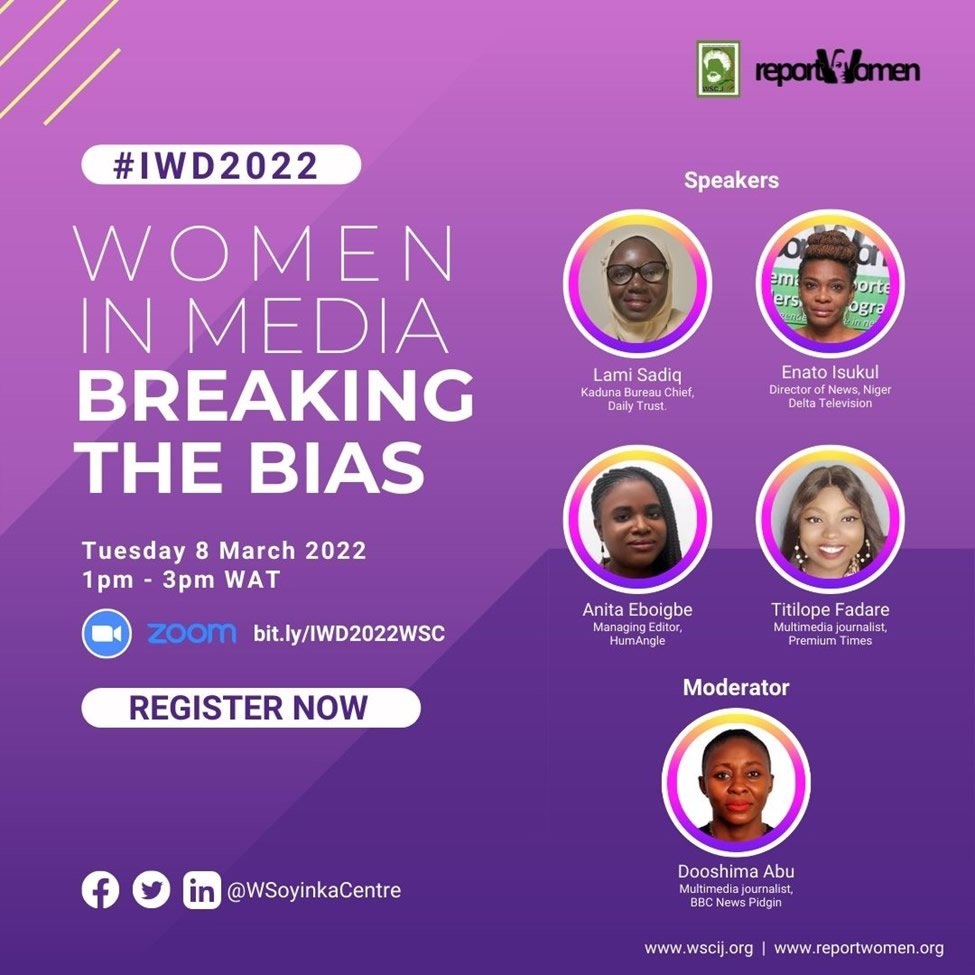 In celebration of the 2022 International Women’s Day held annually on 8 March, the Wole Soyinka Centre for Investigative Journalism (WSCIJ) hosted a virtual meeting for journalists, women and girl-child advocates as well as representatives of agencies for the protection of women’s rights in Nigeria. In line with the 2022 theme, #BreakTheBias, stakeholders gave tips on how women reporters can break bias and overcome impostor syndrome in the newsroom.