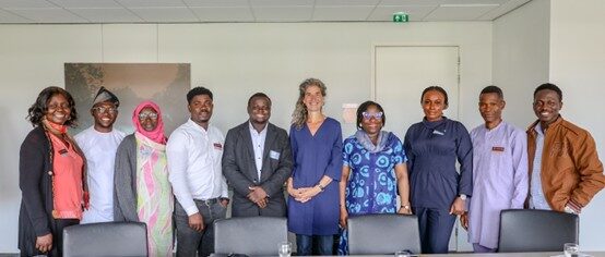The laureates with Motunrayo Alaka, ED/CEO WSCIJ (middle with glasses) after a meeting with Danielle Hirsch (middle), member of the Dutch Parliament.
